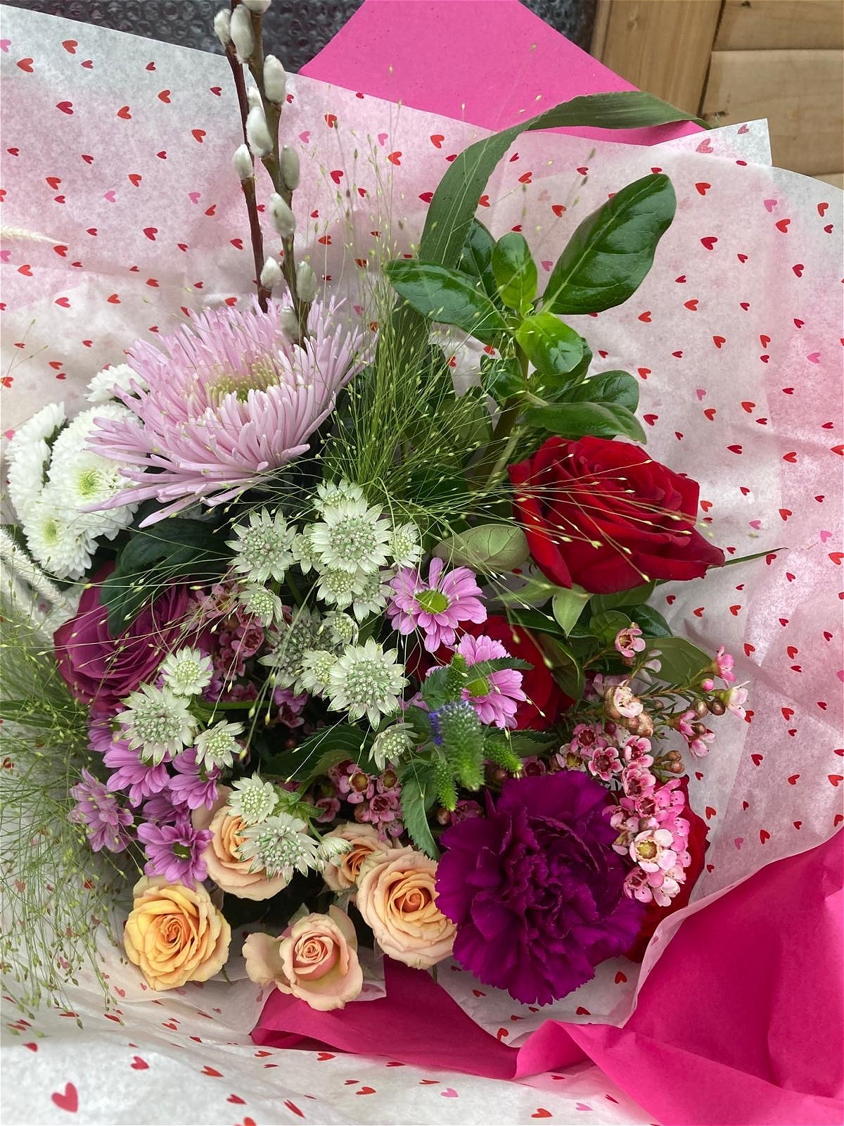 Colours and flowers are florist choice.  It can be delived or collected from our studio ( we require at least one day notice for this, thank you)